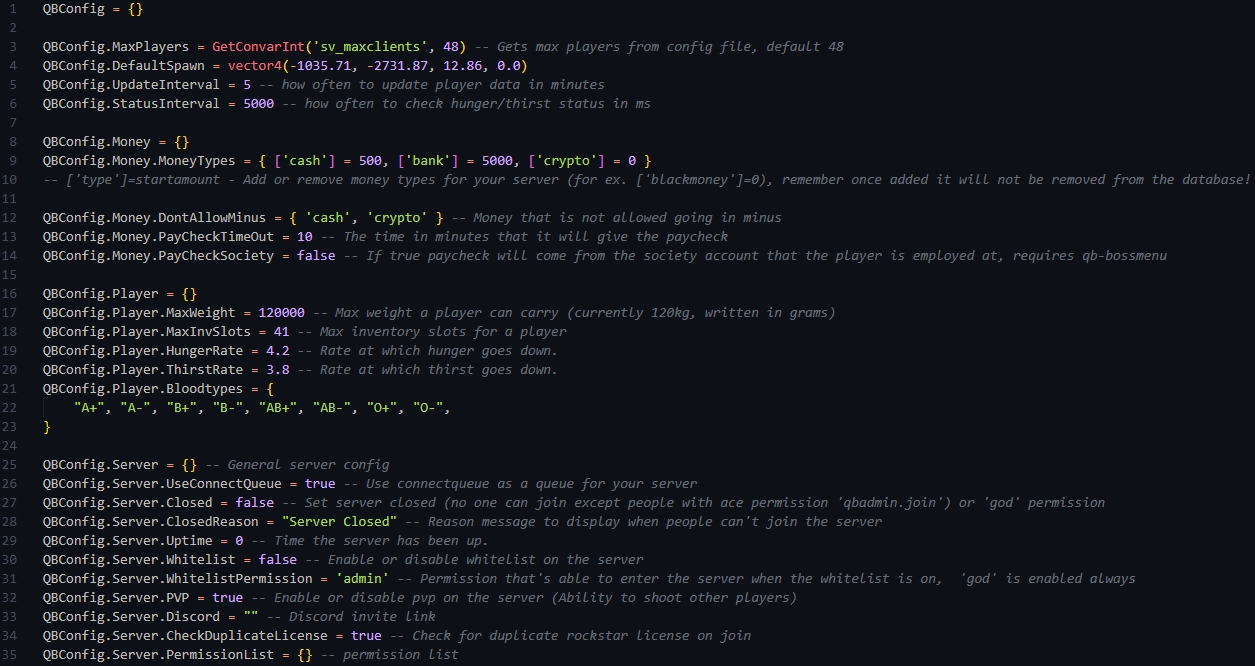 This folder contains files with all added vehicles, items, weapons, jobs and gangs in the system